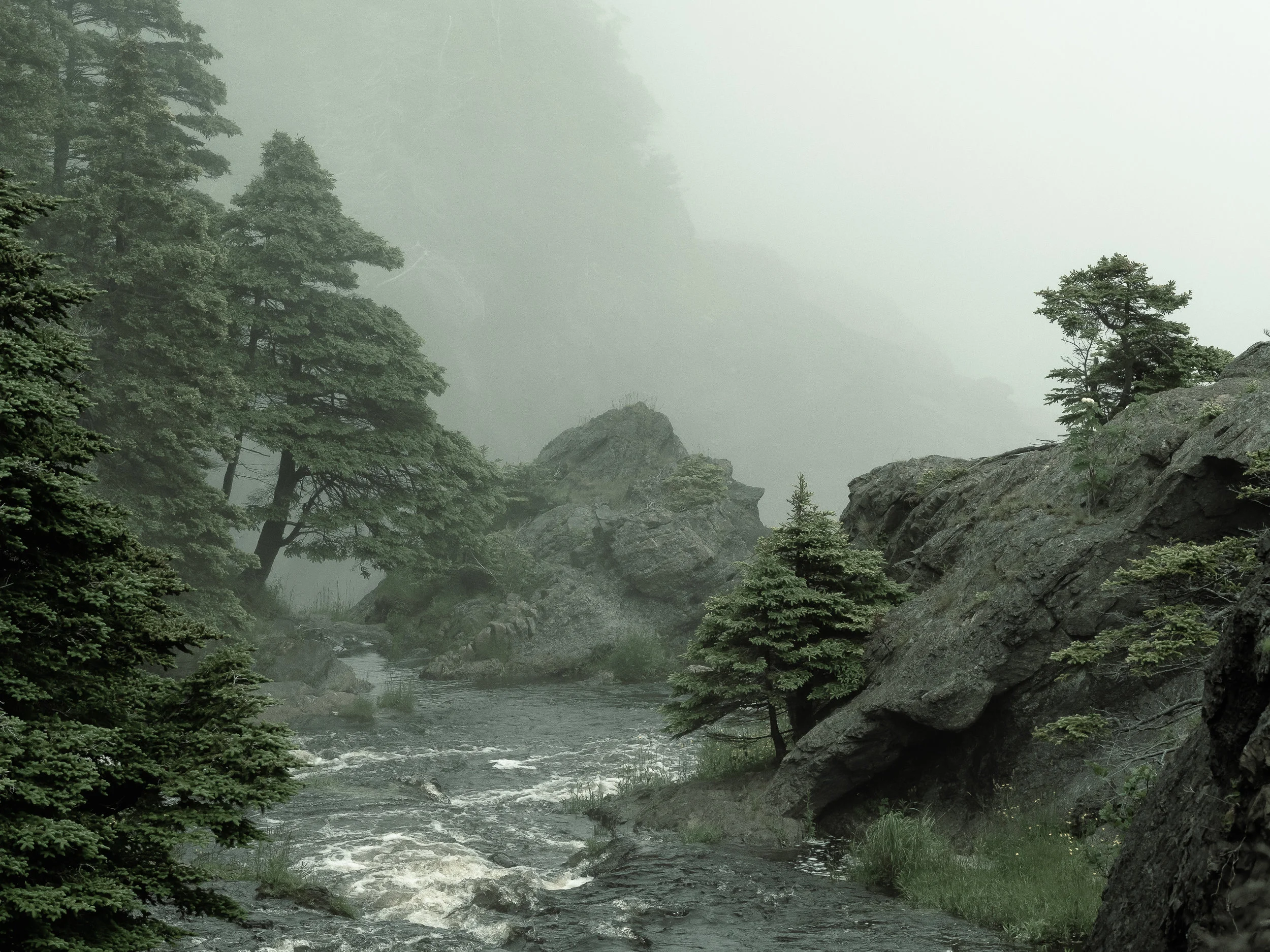 This series was inspired by Childhood, Remembered, the last poem in Michelle Porter’s recently published collection Inquiries. Rivers exert a powerful pull on both of us. They are also photographically largely unexplored in Newfoundland where visual representation of the island mostly focuses on ocean and littoral areas. Shifting the focus from coastal Newfoundland to its riverscapes and borrowing ideas from both pictorialism and contemporary approaches to documentary and landscape photography, this series examines the notion that we have to find new ways to rebuild our relationship with the natural world on a more equitable, respectful, and spiritual foundation. The photographs were made on Big River, Rennie’s River, and Waterford, Manuels, and Salmonier rivers on Newfoundland’s Avalon Peninsula.